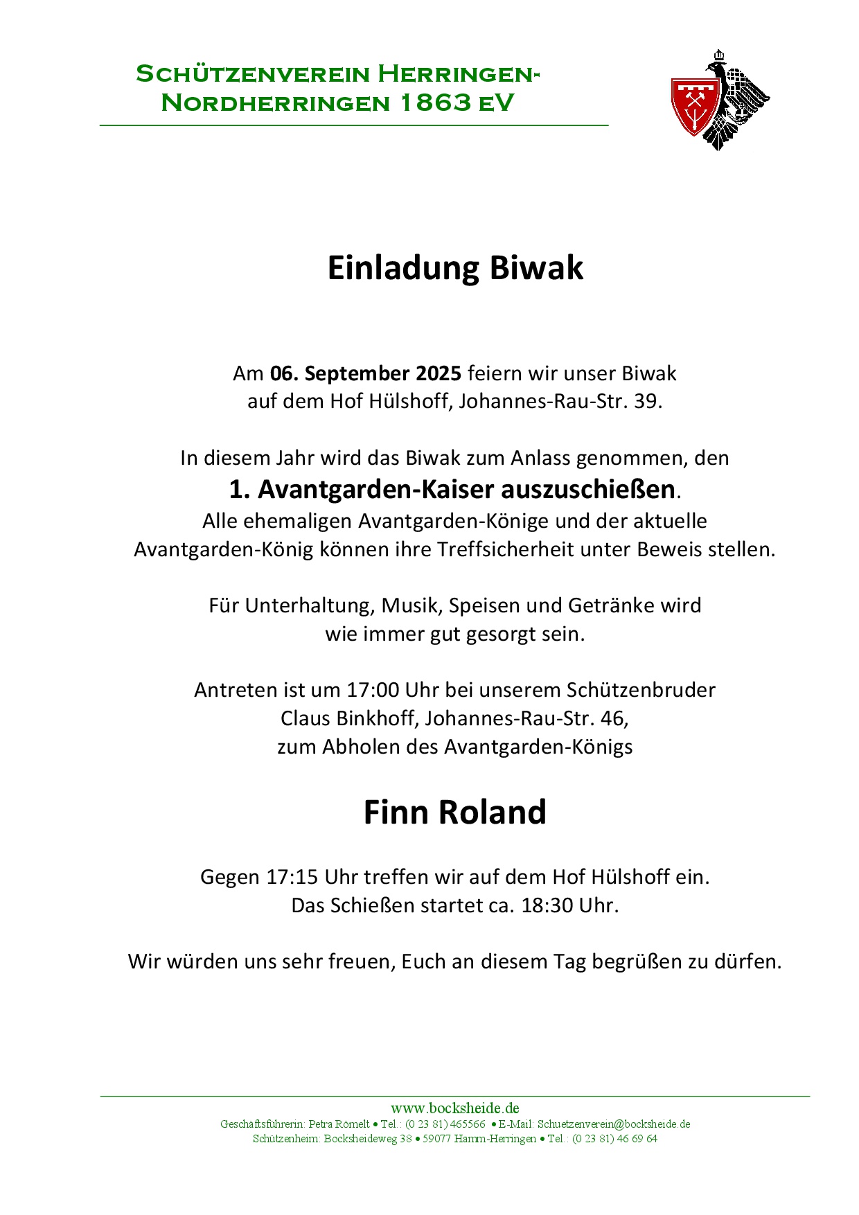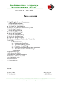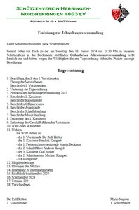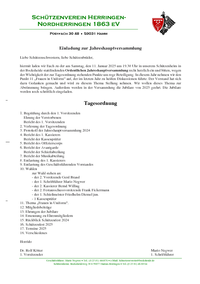hiermit laden wir Euch zu der am Samstag, den 11. Januar 2025 um 19.30 Uhr in unserem Schützenheim in der Bocksheide stattfindenden Ordentlichen Jahreshauptversammlung recht herzlich ein und bitten, wegen der Wichtigkeit der zur Tagesordnung stehenden Punkte um rege Beteiligung. In diesem Jahr nehmen wir den Punkt 11 „Frauen in Uniform“ auf, der im letzten Jahr zu heißen Diskussionen führte. Der Vorstand hat sich dazu Gedanken gemacht und wird zu diesem Thema Stellung nehmen. Wir wollen dieses Thema zur Abstimmung bringen. Außerdem werden in der Versammlung die Jubilare von 2025 geehrt. Die Jubilare werden noch schriftlich eingeladen.