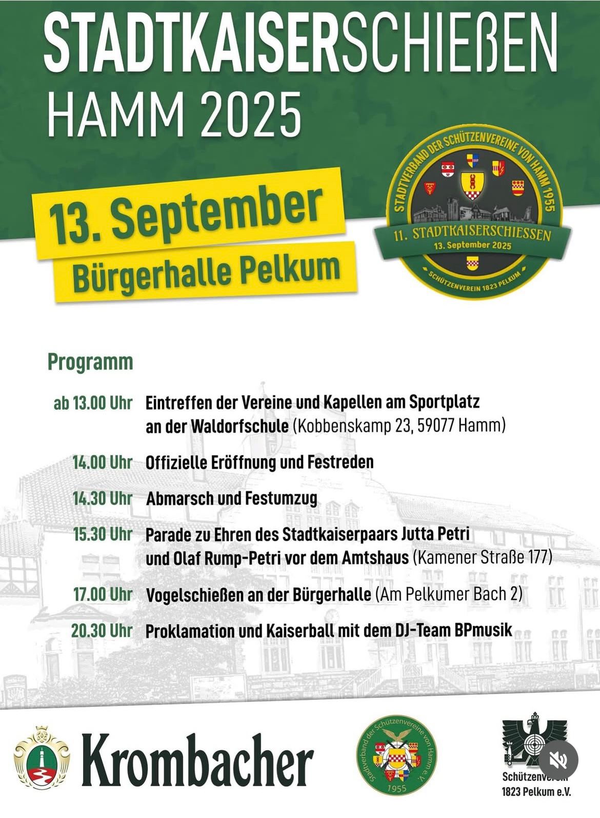 Der Schützenverein Pelkum richtet in diesem Jahr das Stadtkaiserschießen aus, den Ablauf erfahrt Ihr hier.