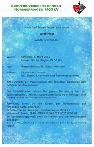 Am 8. November 2019 lädt der Schützenverein Herringen - Nordherringen 1863 e.V. zum gemütlichen Vereins – und Familienfest ein.
